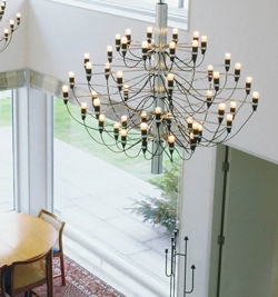 Das Gestell und die Arme des Kronleuchters sind in dieser Variante aus Chrom - in der mittleren Größe des 2097-Kronleuchters.
