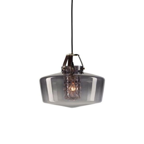 Addicted To Us von Design By Us ist eine stilvolle Pendelleuchte aus mundgeblasenem Glas und hat einen feinen Abschluss mit cognacfarbenem Leder an der Spitze.