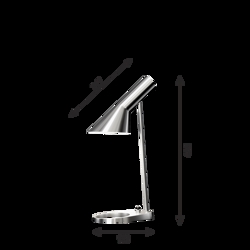 Louis Poulsen AJ Mini Tischleuchte Version 3, polierter Stahl - entworfen von Arne Jacobsen.