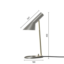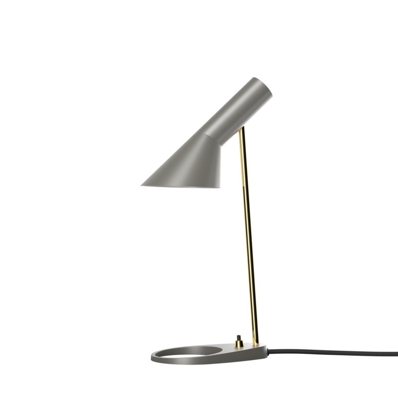 Louis Poulsen AJ Mini Tischleuchte, grau/messing - entworfen von Arne Jacobsen