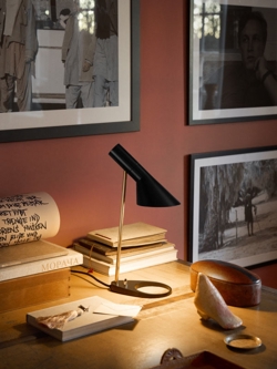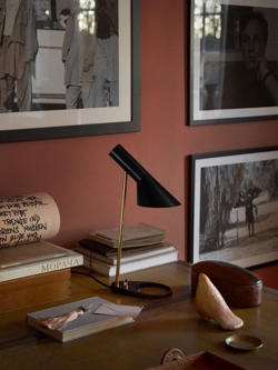Louis Poulsen AJ Mini Tischleuchte, schwarz/messing - entworfen von Arne Jacobsen