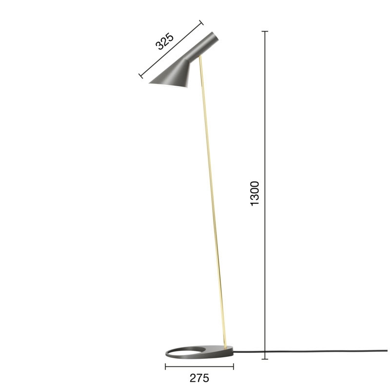 Louis Poulsen AJ Stehleuchte, grau/messing - entworfen von Arne Jacobsen