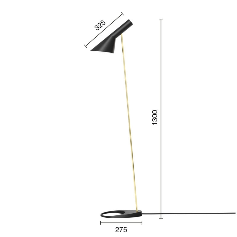 Louis Poulsen AJ Stehleuchte, schwarz/messing - entworfen von Arne Jacobsen