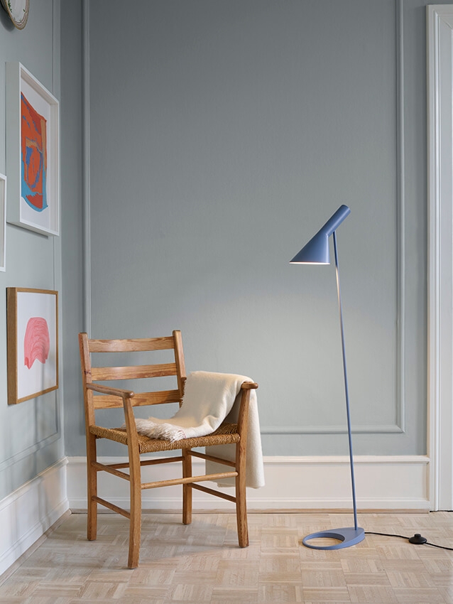Die AJ Lampe hat eine charakteristisch reine Form mit einer Kombination aus geraden und gebogenen Winkeln. Die außergewöhnliche AJ Stehleuchte bietet eine fantastische nach unten gerichtete Beleuchtung, und der Schirm kann auch gekippt werden, um das Licht nach Bedarf anzupassen.