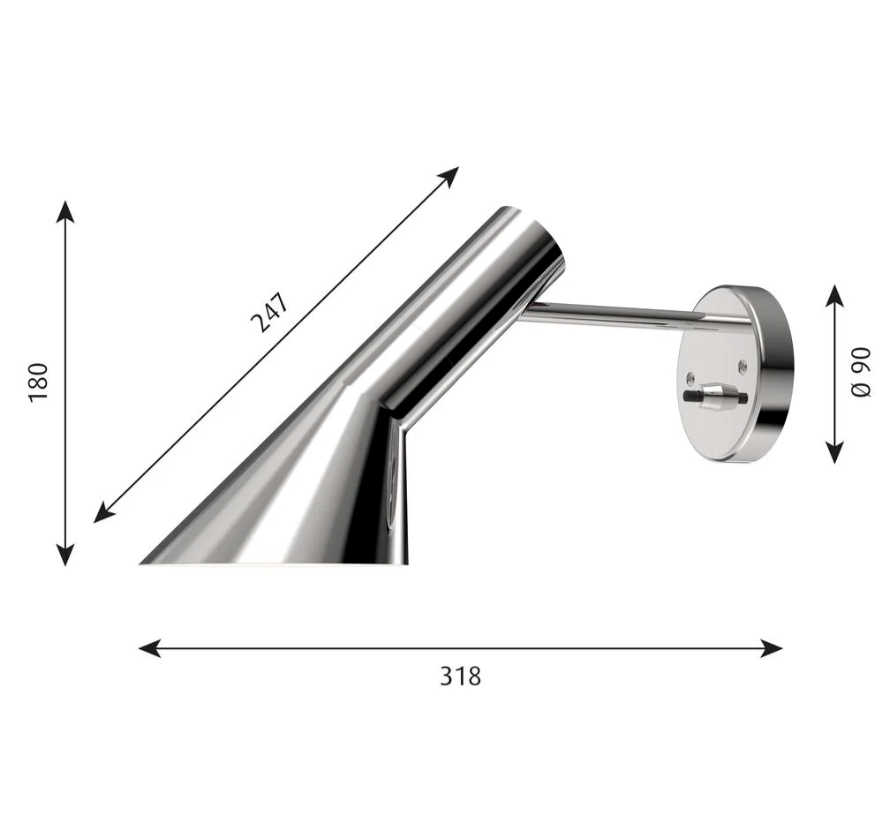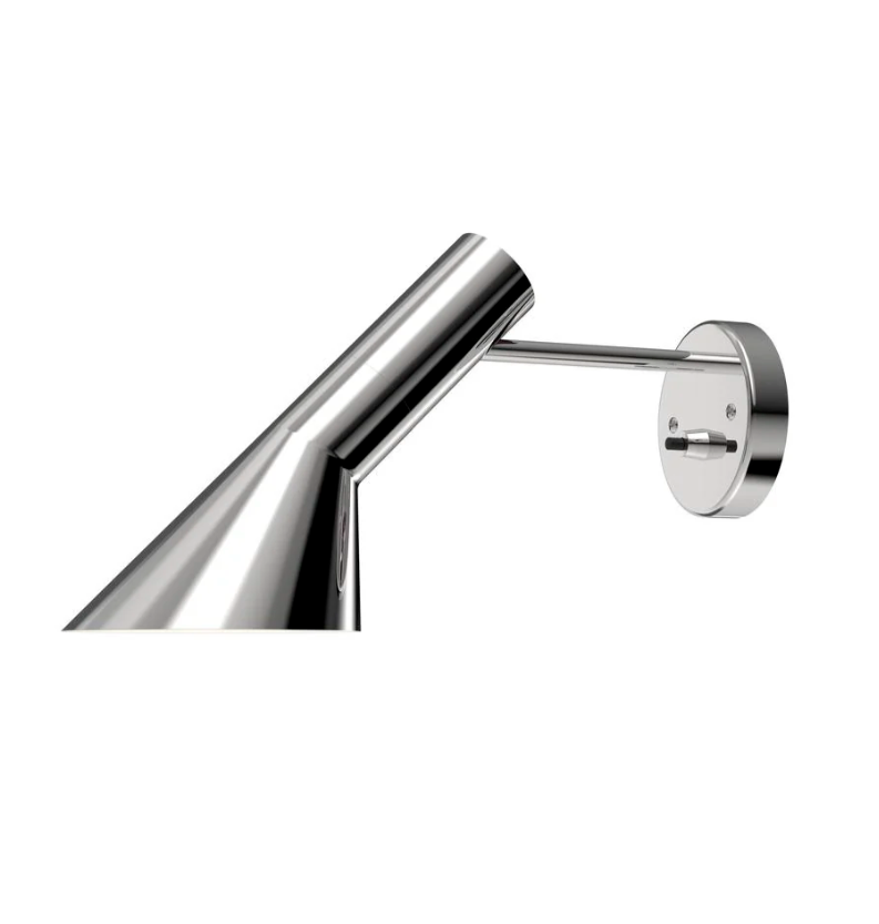 Louis Poulsen AJ Wandleuchte m/Schalter, polierter Stahl - entworfen von Arne Jacobsen