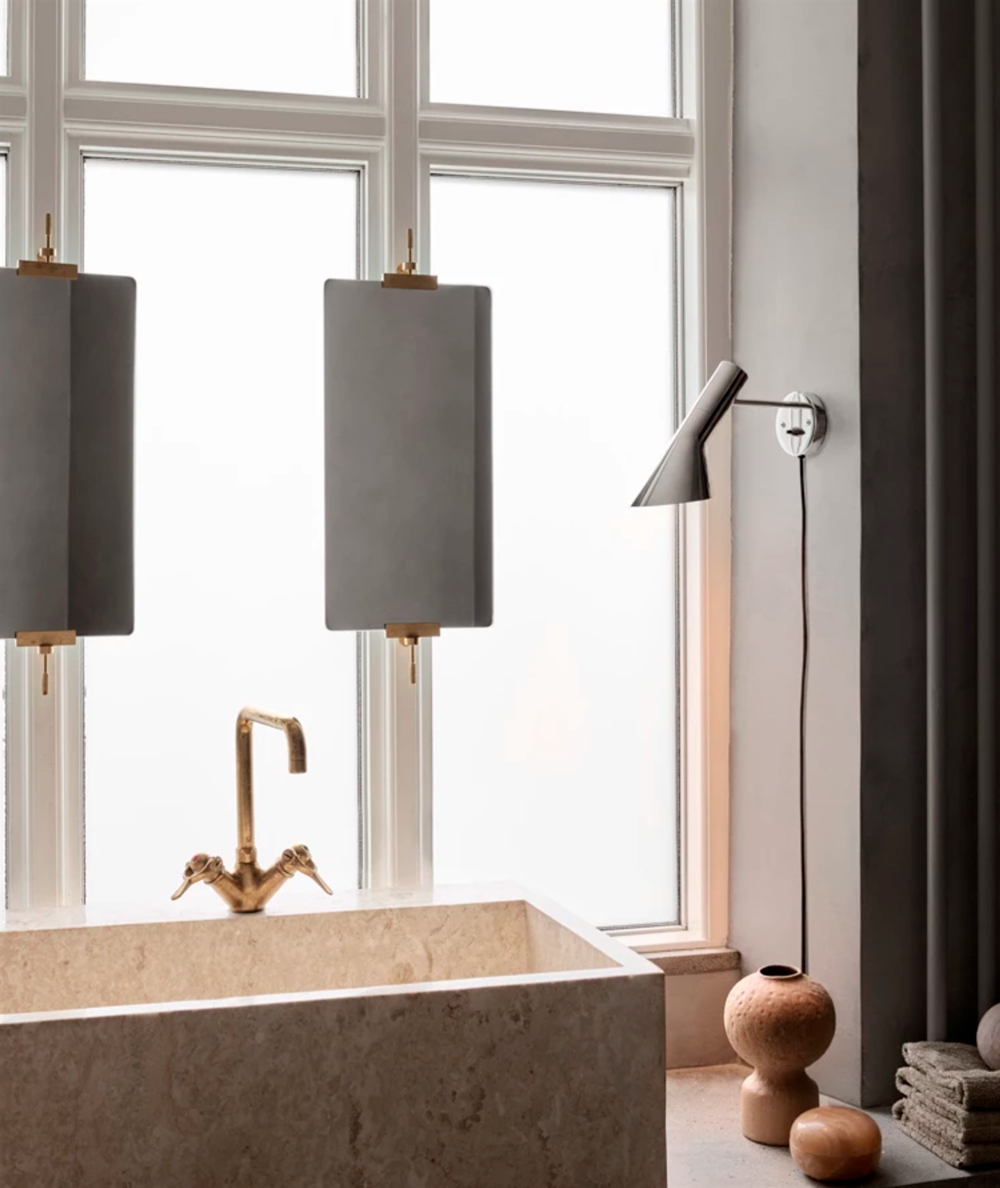 Die AJ Lampe hat eine charakteristisch reine Form mit einer Kombination aus geraden und gebogenen Winkeln. Die außergewöhnliche AJ Wandleuchte bietet eine fantastische nach unten gerichtete Beleuchtung, und der Schirm kann auch gekippt werden, um das Licht an die eigenen Bedürfnisse anzupassen.