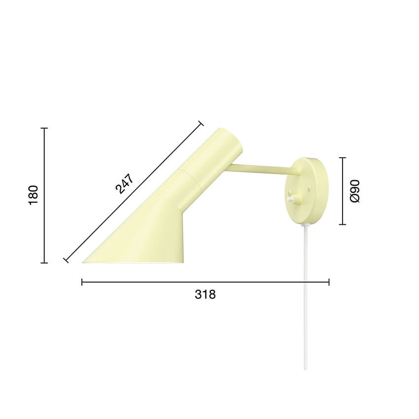 Louis Poulsen AJ Wandleuchte, soft lemon - entworfen von Arne Jacobsen
