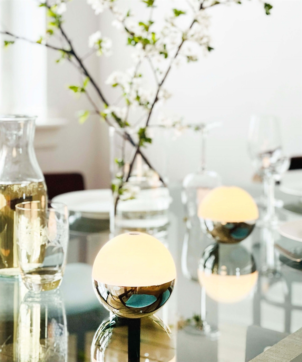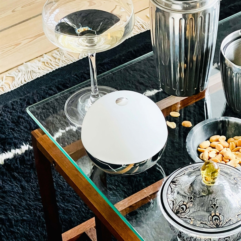 Dyberg Larsen Alba Light Ball Batterielampe/Tischlampe, Chrom (1 Stk.) - entworfen von Rena Rose