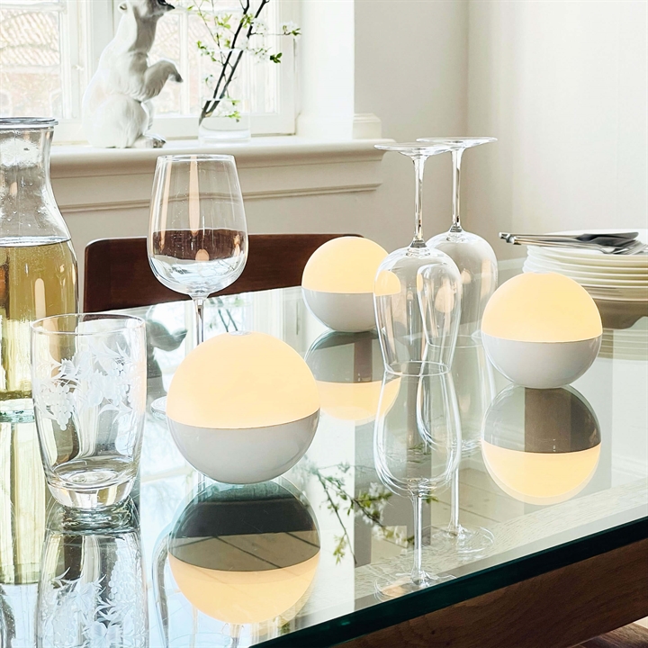 Die wiederaufladbare Lichtkugel Alba vereint Funktion und Design in einer modernen tragbaren Tischlampe, die sowohl drinnen als auch draußen verwendet werden kann. Die Batterielampe ist in drei Stufen über eine Touch-Funktion oben oder die mitgelieferte Fernbedienung dimmbar und kann bis zu 90 Stunden bei niedrigster Stufe, 50 Stunden bei mittlerer Stufe und 20 Stunden bei höchster Stufe leuchten. Das Aufladen erfolgt einfach mit dem mitgelieferten USB-Kabel.