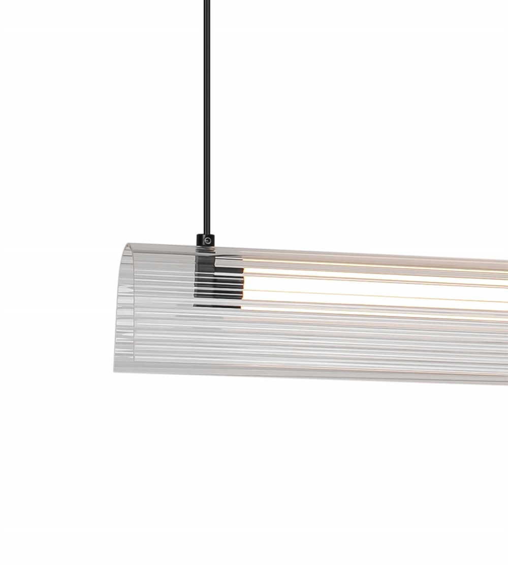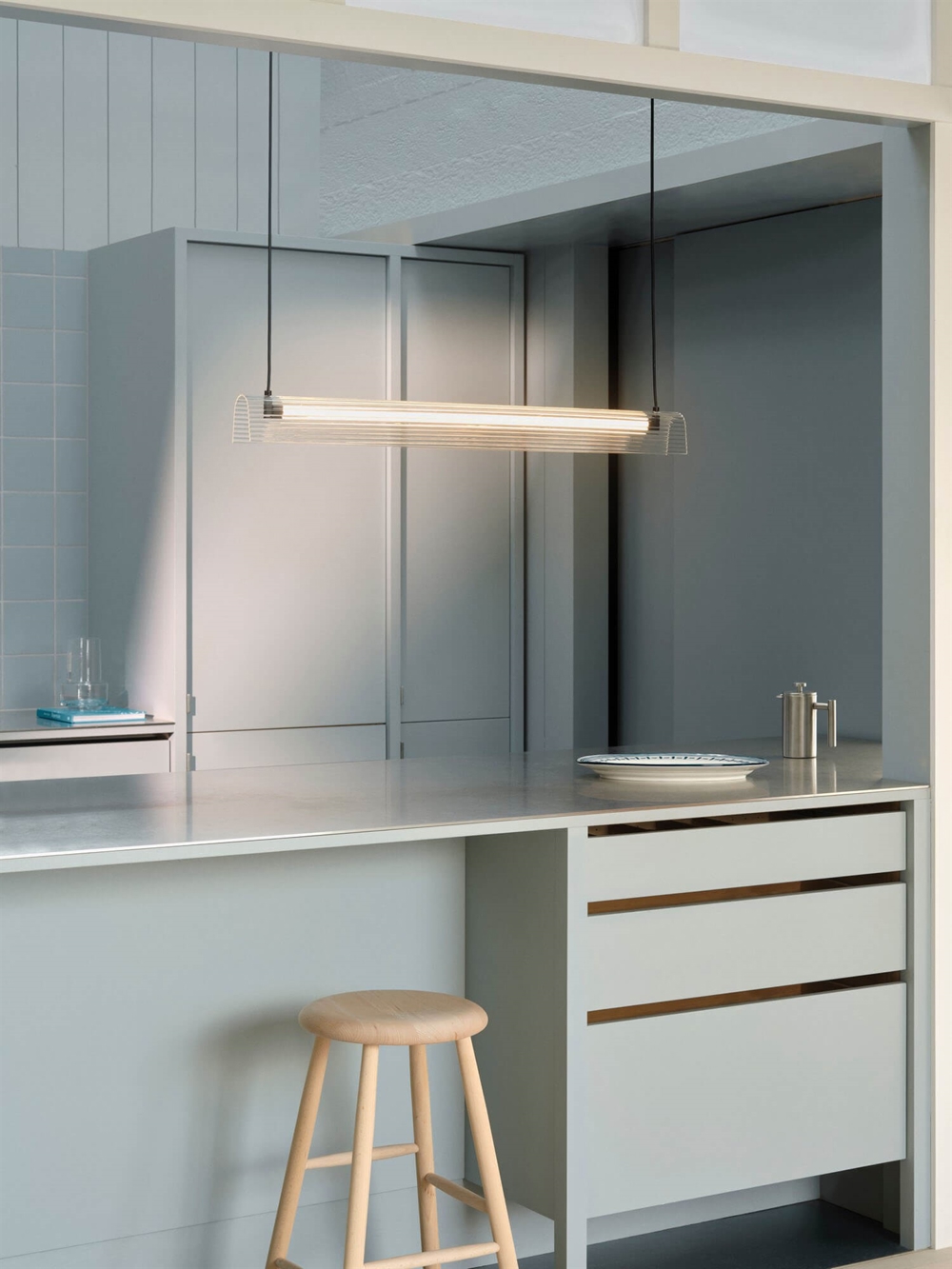 Mit schwarzem Finish, transparentem Schirm und schlanker Silhouette passt Aliani zu vielen modernen Einrichtungen. Die längliche Form macht die Leuchte besonders geeignet über dem Esstisch oder der Kücheninsel.