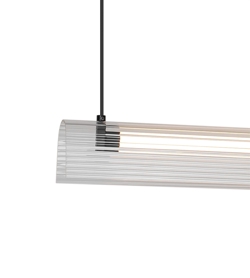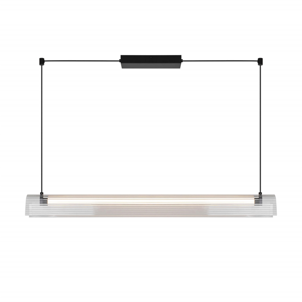 Aliani ist eine moderne Pendelleuchte mit funktionalem Licht und einem eleganten Ausdruck. Die Leuchte hat ein schlankes Profil mit einem geriffelten Acrylschirm, der dem Design sowohl Struktur als auch visuelle Tiefe verleiht. Die integrierte LED-Lichtquelle der Pendelleuchte erzeugt mithilfe des Schirms eine weiche und angenehme Beleuchtung mit einem Spiel aus Licht und Schatten.