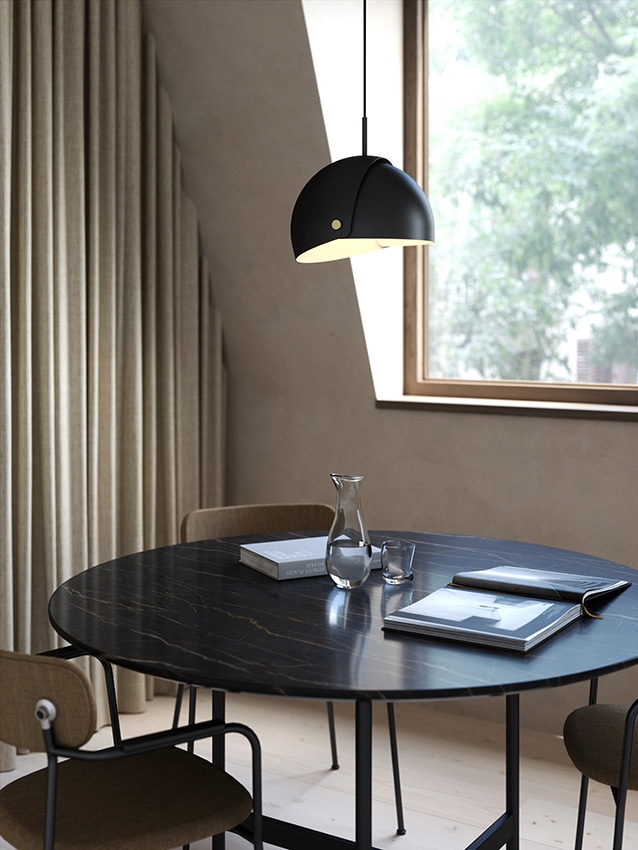 Die Align Pendelleuchte ist allein schön, aber auch in Kombination mit mehreren Pendelleuchten. Align ist auch in Weiß erhältlich.