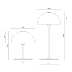 Maße: Höhe 12 oder 20 cm. Schirm: Ø10 cm, Fuß: Ø8 cm