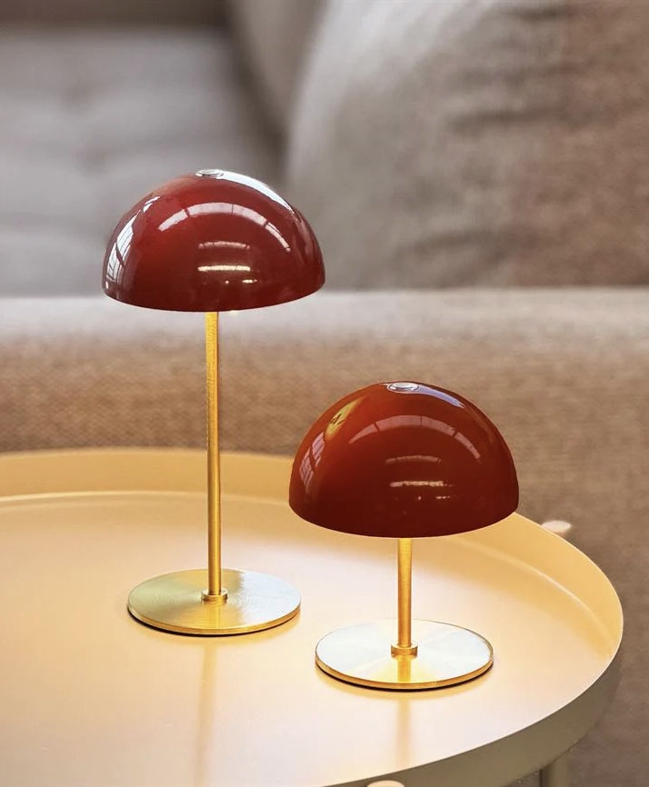 Along LED Tischlampe / Akkulampe, dunkelrot/messing (2 Stk.)