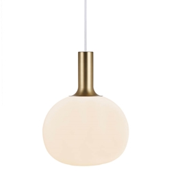 Die Alton 25 Pendelleuchte in Weiß wird mit zwei Aufhängungen in Messing und Schwarz geliefert. Es ist daher möglich, die Aufhängung je nach gewünschtem Ausdruck der Pendelleuchten zu wechseln. Wählt man die Messingaufhängung, erhält man einen wärmeren und moderneren Ausdruck, während die schwarze Aufhängung einen klassischeren und minimalistischeren Ausdruck verleiht.