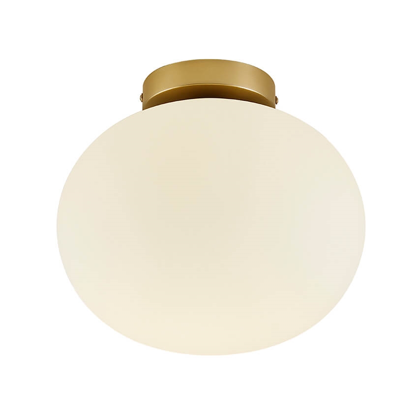 Die Alton Deckenleuchte gibt ein warmes Licht mit dem opalen Schirm, und die Details in Messing verleihen der Lampe einen schönen Ausdruck im Raum.
