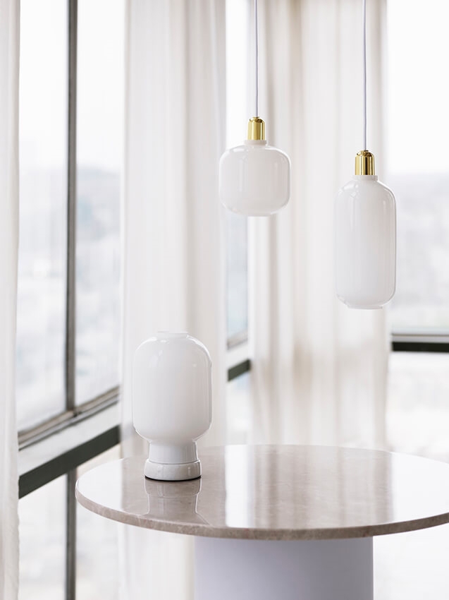 Normann Copenhagen Amp Pendelleuchte, Messing - Groß, Weiß/Messing - entworfen von Simon Legald