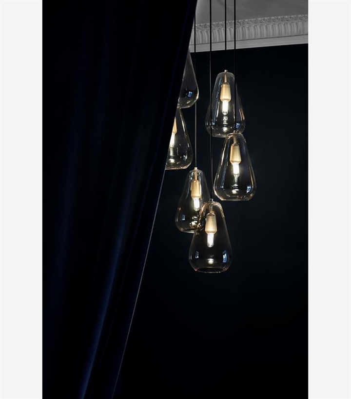 Die Anoli-Lampenserie zeichnet sich durch hohe Handwerkskunst und die Verwendung bester Materialien aus. Anoli ist einfach in seiner Formensprache und besteht aus feinen mundgeblasenen tropfenförmigen Glaspendeln.