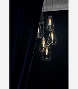 Die Anoli-Lampenserie zeichnet sich durch hohe Handwerkskunst und beste Materialien aus. Anoli ist einfach in ihrer Formensprache und besteht aus feinen mundgeblasenen tropfenförmigen Glaspendeln.