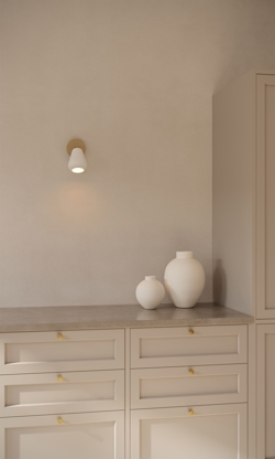 Der Spot ist neben der Kombination nordic gold und weiß auch in komplett schwarz und in denselben Farben als Einbauspot für Decke oder Wand erhältlich.