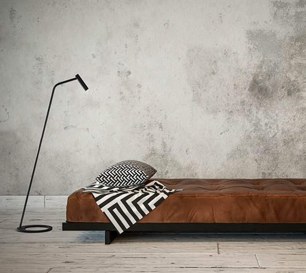 Einfache und elegante Stehlampe in einem Design, das sich leicht in die Einrichtung der meisten Häuser oder Büros einfügt, wo sie in kleinen Bereichen Atmosphäre und Gemütlichkeit schafft.