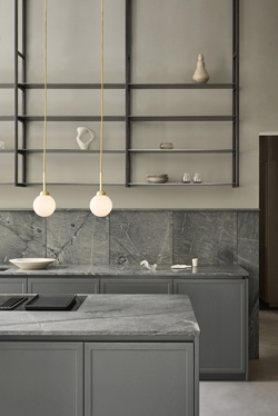 Die Apiales 1 Pendelleuchte verbreitet ein angenehmes, diffuses Licht, das sich perfekt über der Kücheninsel oder dem Esstisch eignet.