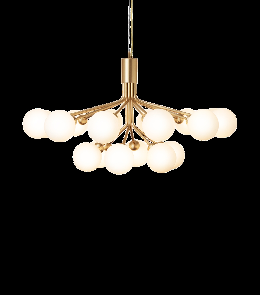 Apiales 18 Kronleuchter, gebürstetes Messing/Opal von Nuura - Design von Sofie Refer.