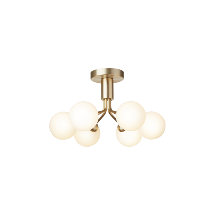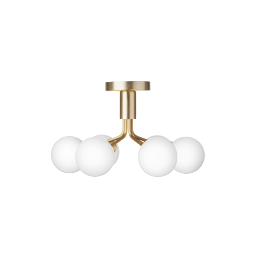 Nuura Apiales 6 Deckenleuchte, gebürstetes Messing/Opal - entworfen von Sofie Refer.
