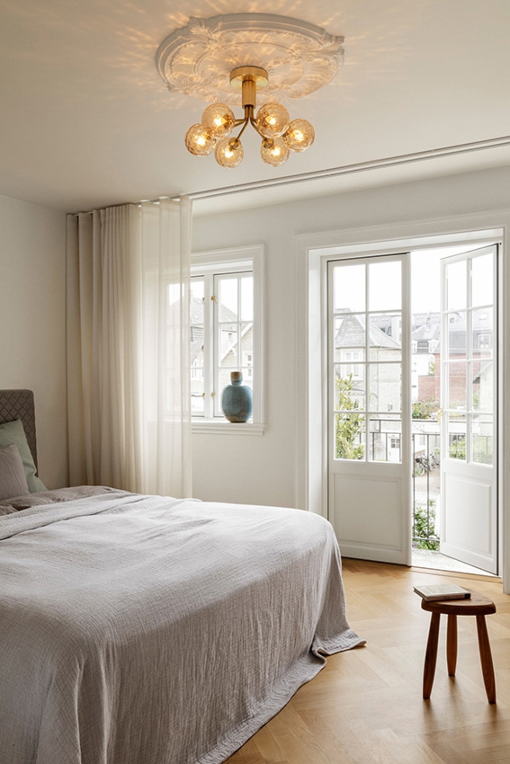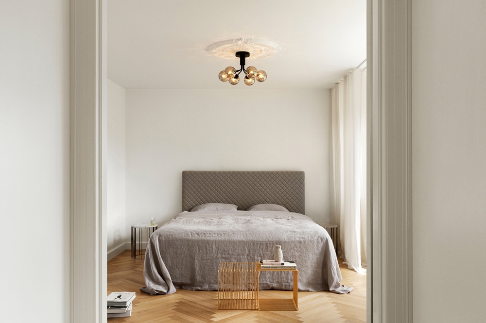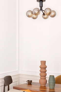 Die Apiales 6 Deckenleuchte wird direkt an der Decke montiert und hat eine niedrige Höhe von 29 cm. Dies verleiht der Lampe eine große Vielseitigkeit und ermöglicht es, eine Deckenleuchte/Kronleuchter auch bei niedrigen Decken oder in Durchgangsräumen zu haben.