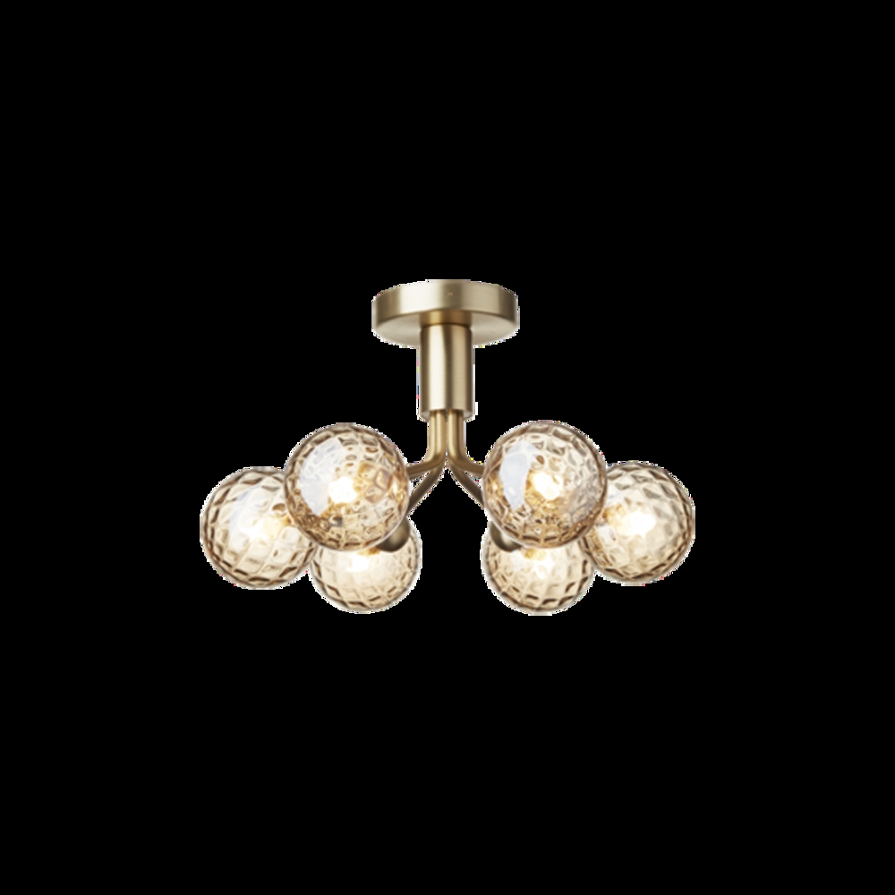Apiales 6 Deckenleuchte, gebürstetes Messing/Optic Gold Glas