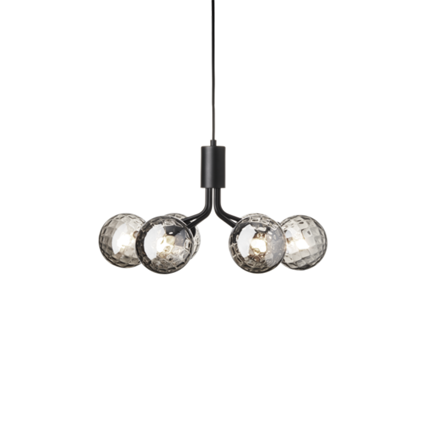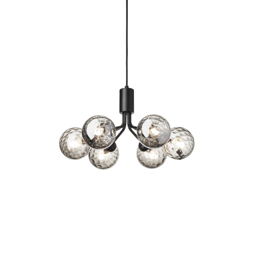 Nuura Apiales 6 Kronleuchter, satin schwarz/optic smoked Glas - entworfen von Sofie Refer.