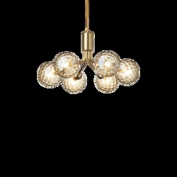 Apiales 6 Kronleuchter, gebürstetes Messing/Optic Gold Glas