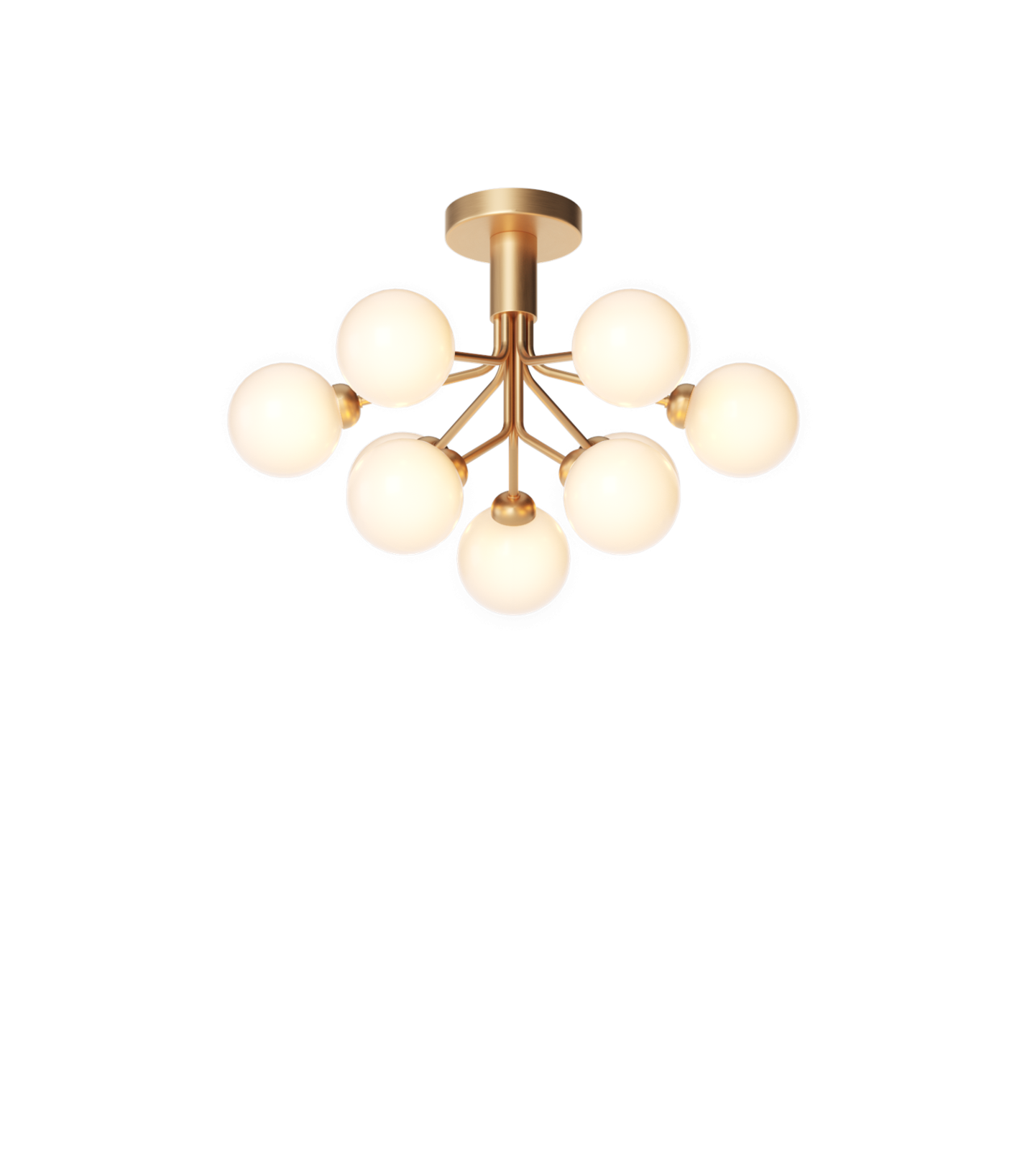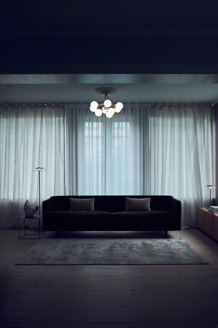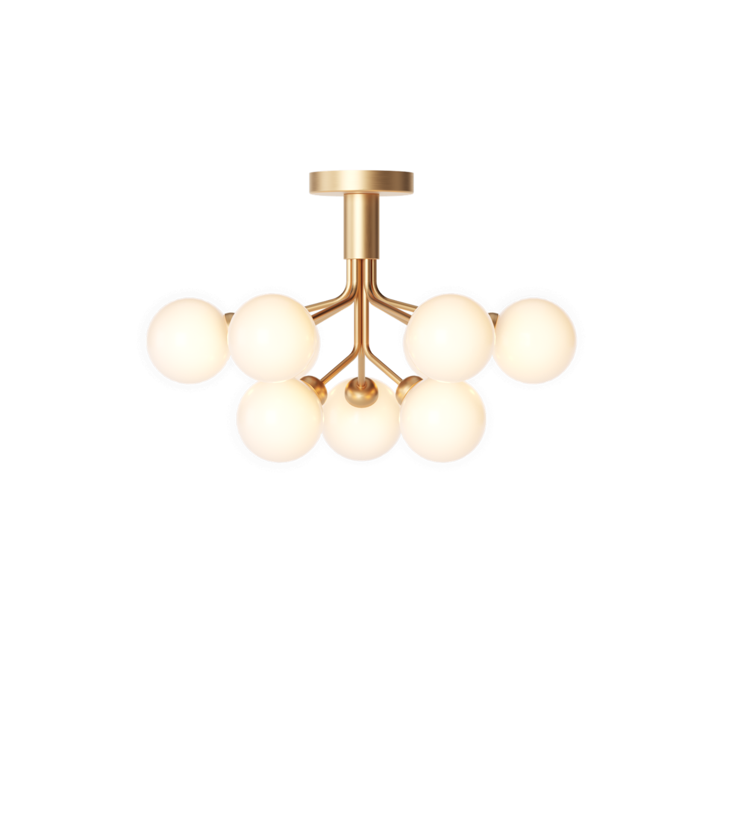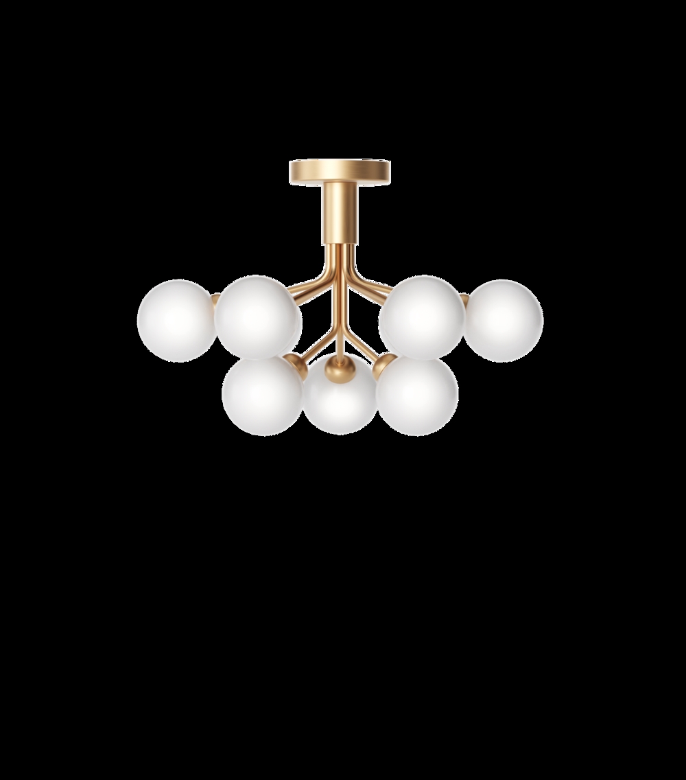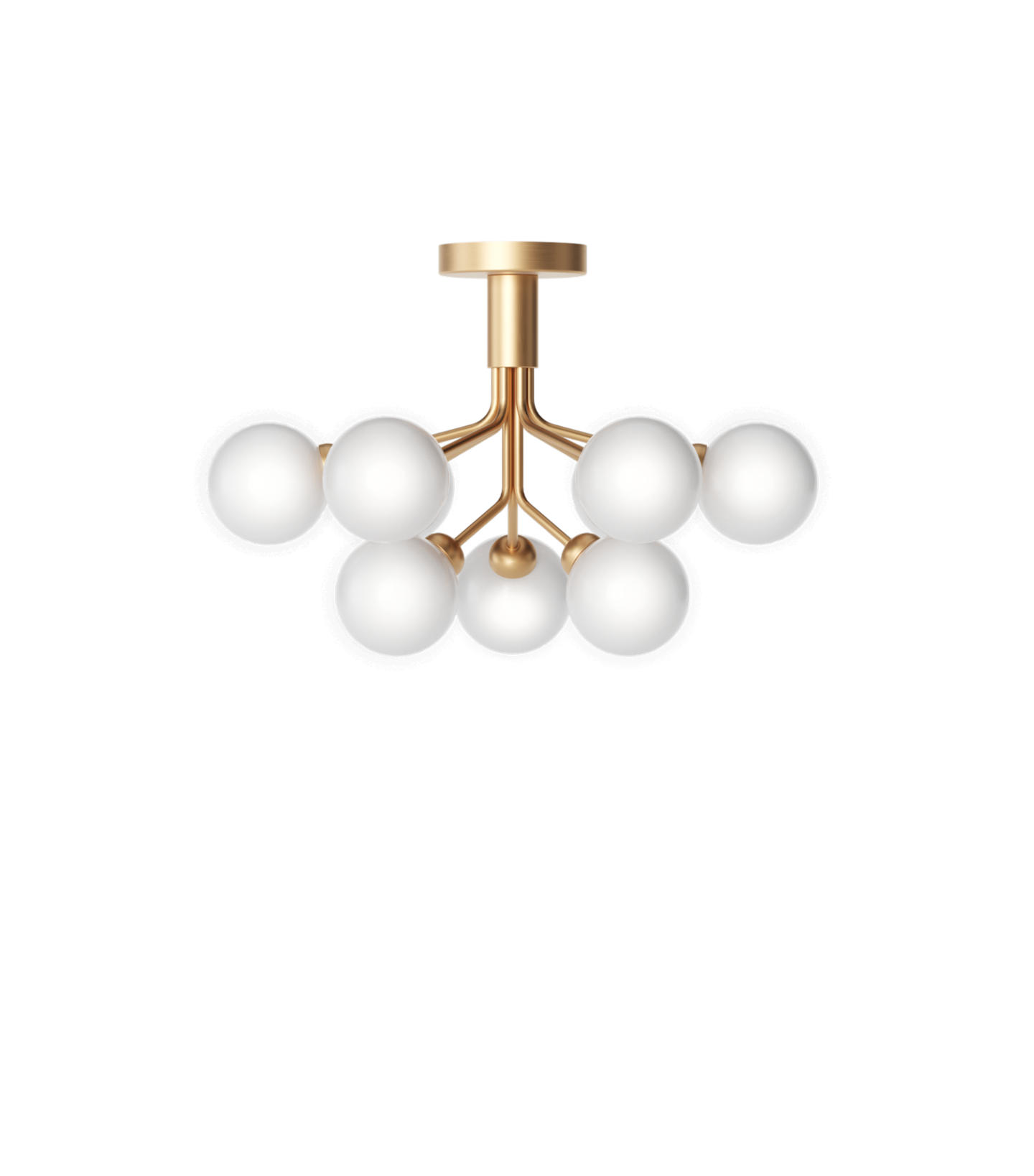 Apiales 9 Deckenleuchte wird direkt an der Decke montiert und hat eine niedrige Höhe von 40 cm. Dies verleiht der Lampe eine große Vielseitigkeit - und macht es nun möglich, eine Deckenleuchte/Kronleuchter zu haben, wo die Decke niedrig ist oder in Durchgangsräumen.