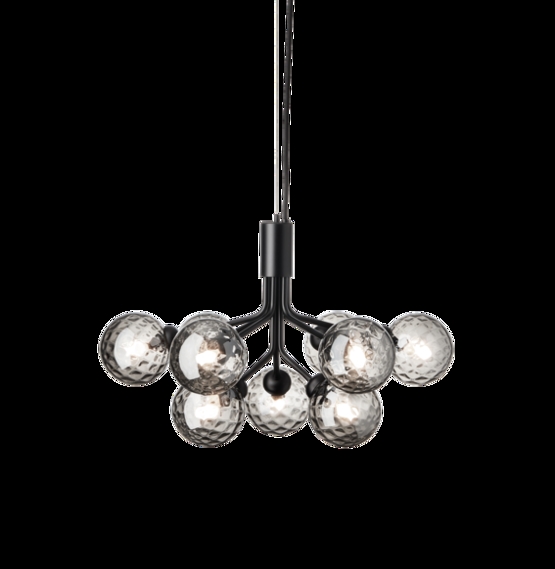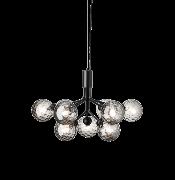 Apiales 9 Kronleuchter, Satin Schwarz/Optic Smoked Glas von Nuura - Design von Sofie Refer.