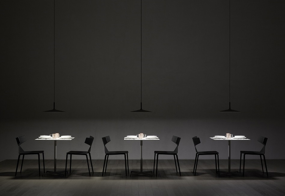 Foscarini Aplomb Pendelleuchte ist perfekt allein oder in einer Gruppe über dem Küchentisch.