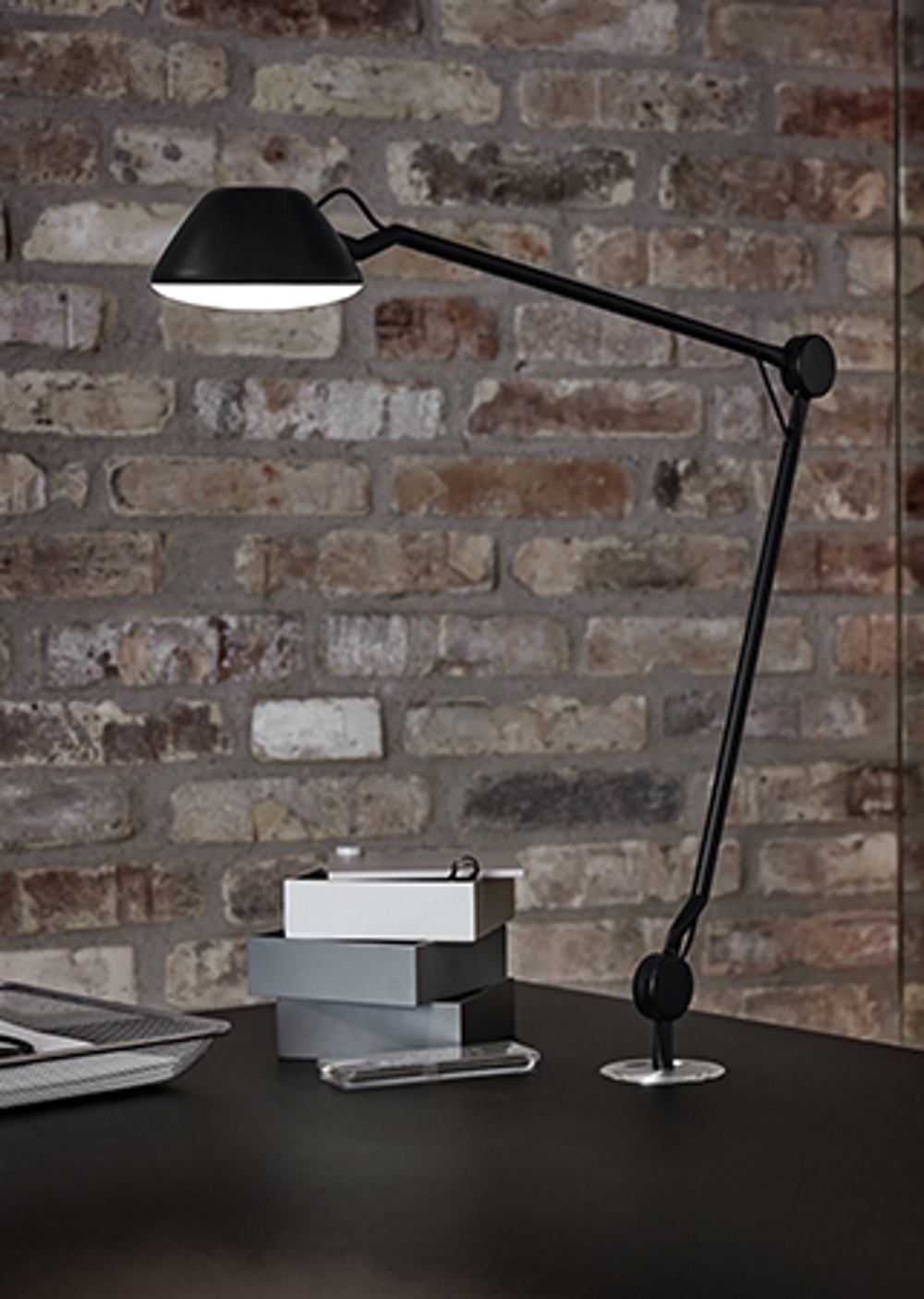 Das Kabel ist im Arm verborgen. AQ01 kann in eine „Plug-in“-Basis gesteckt oder auf dem Tisch platziert werden. Die Lampe sieht auch elegant mit Wandhalterung als Leselampe, in einer Lounge oder als Leselicht am Bett aus.