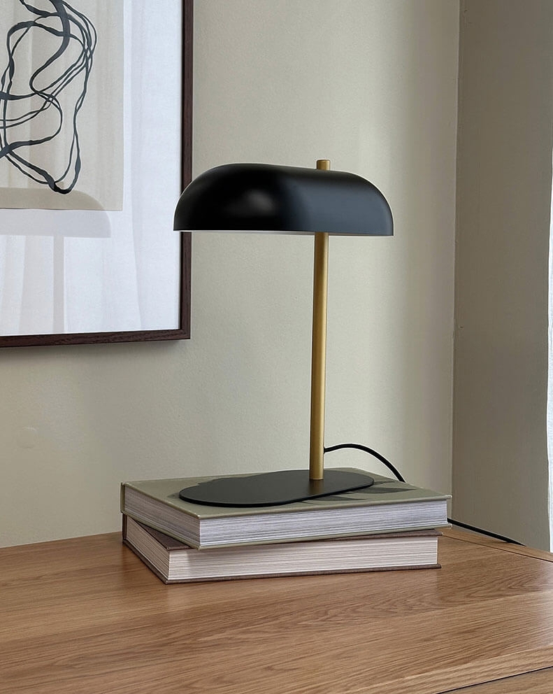 Dyberg Larsen Arch Tischlampe, matt schwarz/Messing - entworfen von Sabine Stougaard