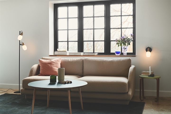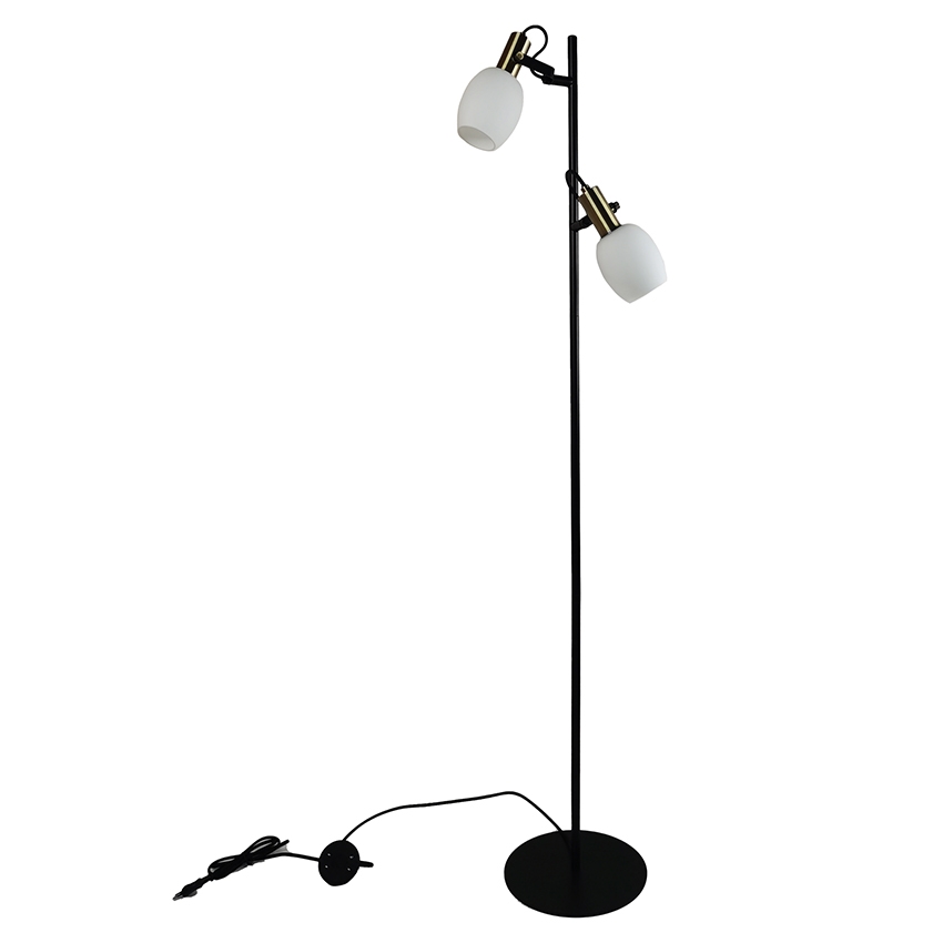 Die Arild Stehlampe kombiniert elegant die opalweißen Schirme, die braunen Messingdetails und die Farbe Mattschwarz. Die Stehlampe hat ein modernes und funktionales Design. Die Schirme lassen das Licht gedämpft und diffus erscheinen. Darüber hinaus sind sie verstellbar, was es ermöglicht, ein gerichtetes Licht zu erhalten.