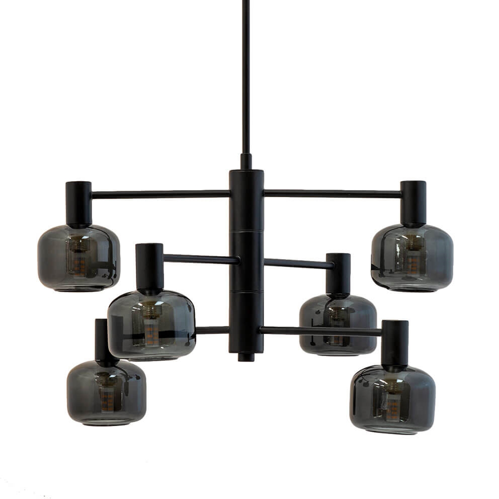 Dyberg Larsen Arp Kronleuchter 6 Kugeln, schwarz/smoke