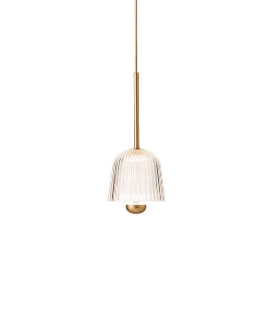 Asteea 1 Pendelleuchte, satin Messing/geriffelt klar