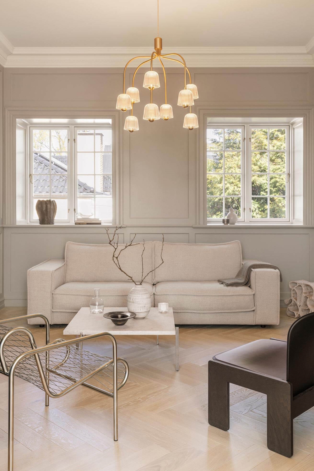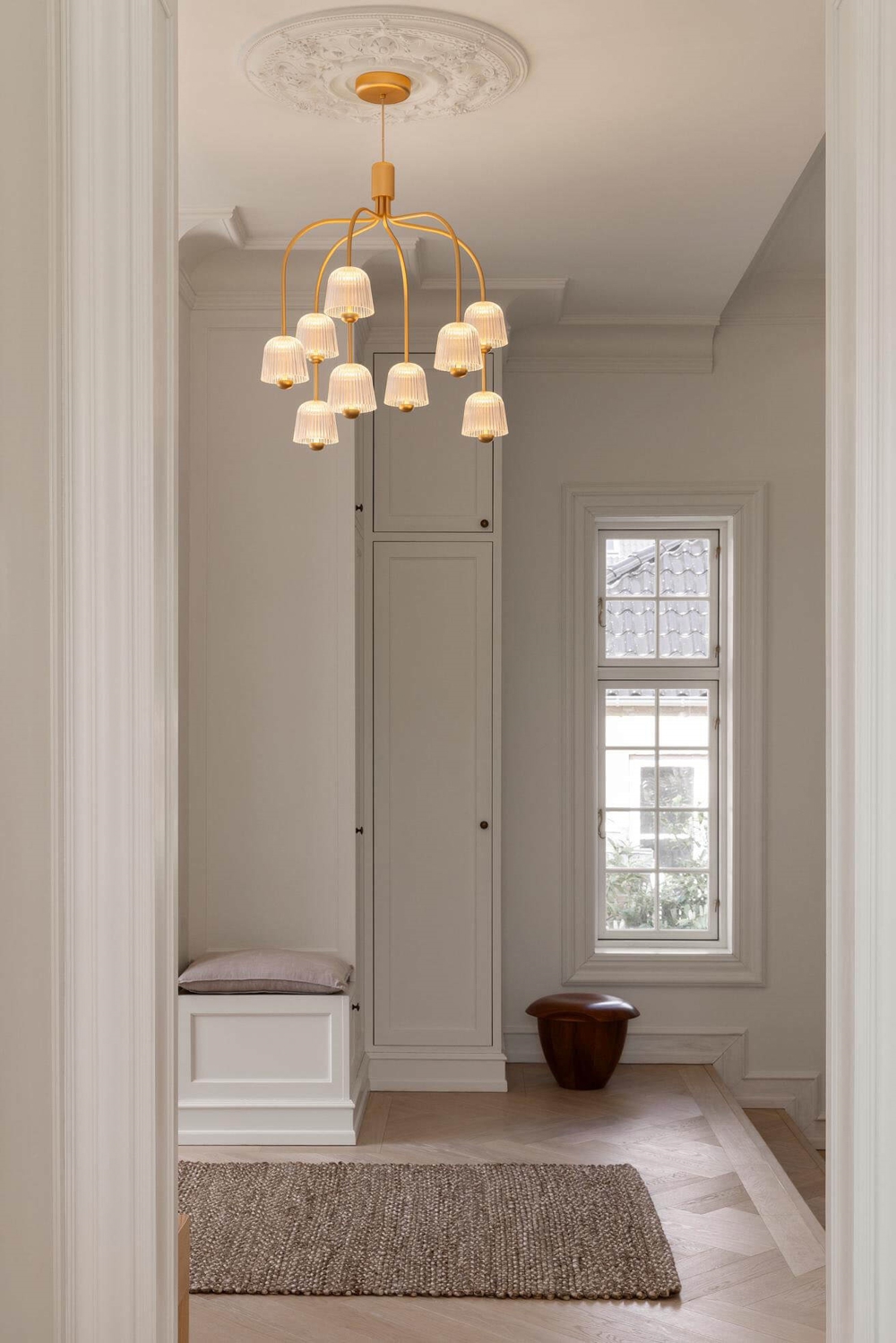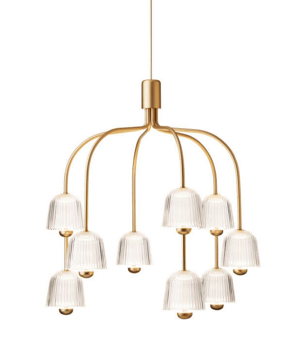 Nuura Asteea 9 Kronleuchter, Satin Messing/geriffeltes Klar - entworfen von Sofie Refer