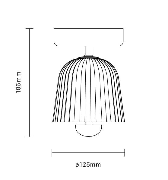 Die Deckenleuchte Asteea mit dem glockenförmigen Acrylschirm und der Basis in satin Messing hat ein stilvolles und exklusives Design. Die Lampe bietet ein weiches und angenehmes Licht, das sich über die Decke verteilt. Die geriffelte Struktur des klaren Schirms trägt zu einem lebendigen Lichtspiel bei, das jedem Raum Wärme und Charakter verleiht.