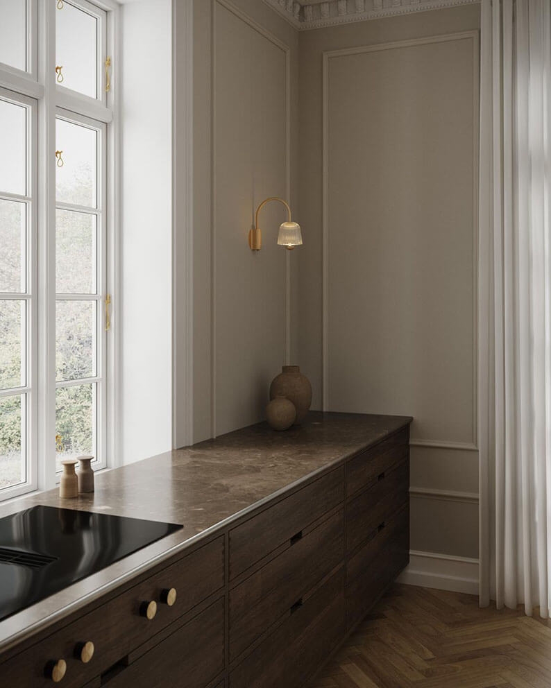 Nuura Asteea Wandleuchte, Satin Messing/geriffeltes Klar - entworfen von Sofie Refer