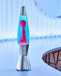 Die Lavalampe Astro Baby, die 1964 eingeführt wurde, wurde von Edward Craven Walker entworfen, der die Lavalampe erfand und Mathmos gründete. Diese Variante verfügt über eine handgesponnene Basis und einen Deckel aus Aluminium mit polierter Silberoberfläche. Die Flasche in Blau mit pinker Lava ist manuell gefüllt und basiert auf Mathmos' einzigartigem Lavarezept, das bis zu 2.000 Stunden Nutzung ermöglicht, bevor die Flasche ausgetauscht werden muss.