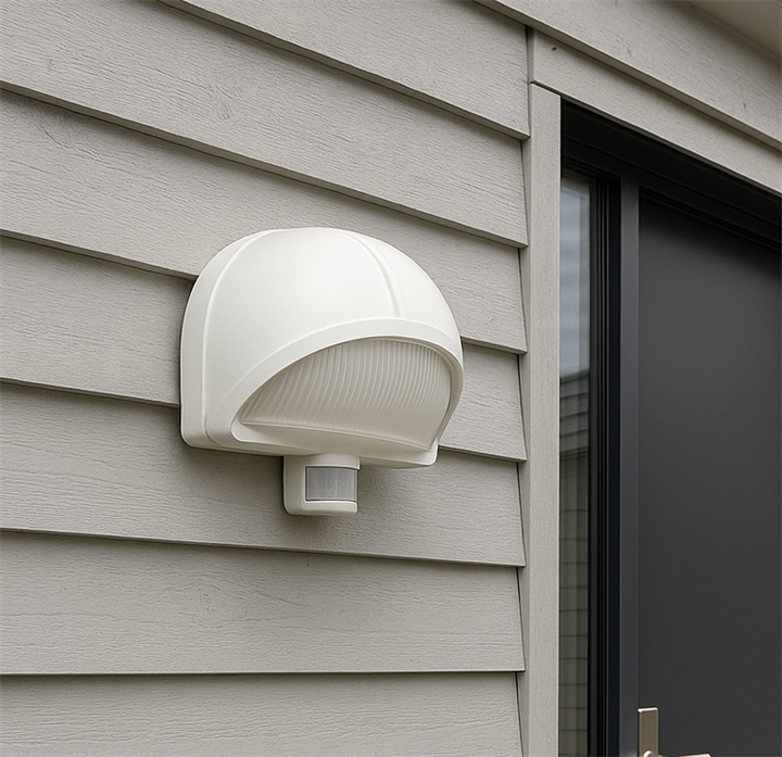 Diese Außenleuchte mit Sensor ist in Schwarz und Weiß erhältlich und kann an Wand oder Pfosten montiert werden - drinnen oder draußen.