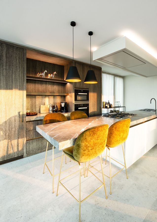Die Sheik Pendelleuchte in Weiß/ Gold von Wever & Ducré ist aus Aluminium gefertigt.