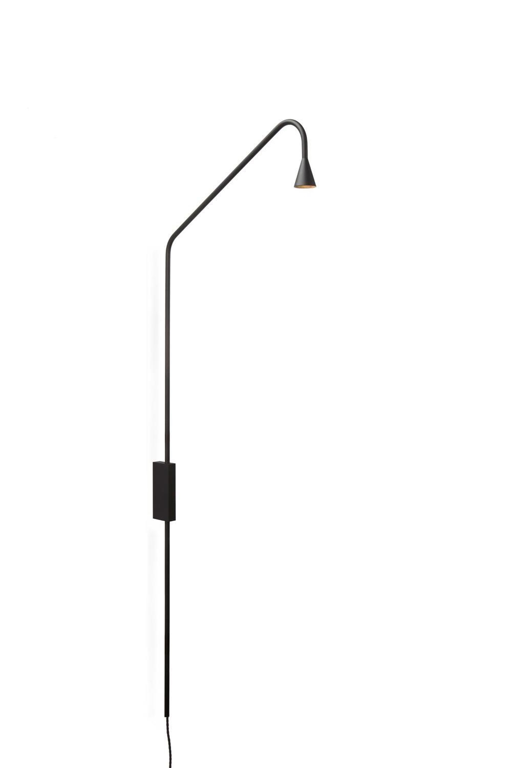 Die Wandleuchte ist in den Farben Schwarz, Messing, Weiß und Gunmetal erhältlich.