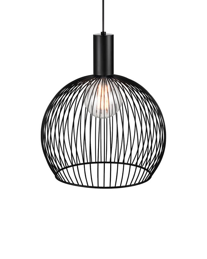 Das Design der Pendelleuchte ist einfach und ästhetisch. Die sichtbare Glühbirne ist von gebogenen Metalldrähten umgeben, die ein schönes Licht und faszinierende Schattenspiele erzeugen.