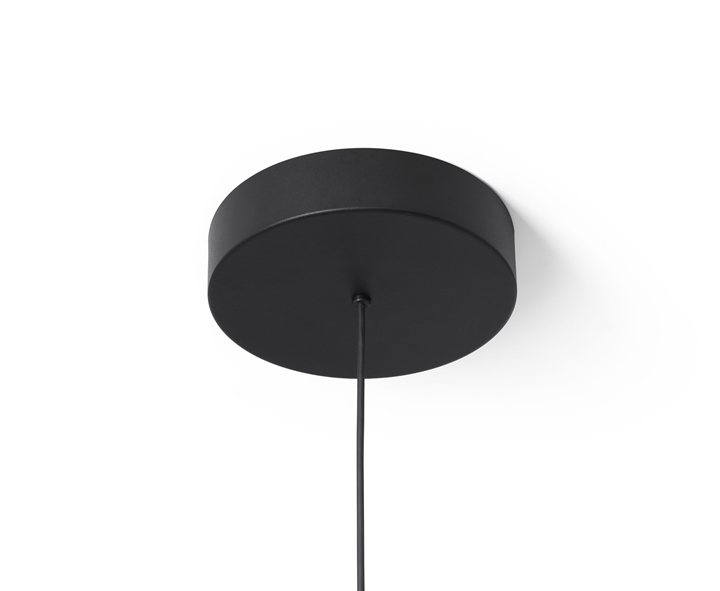 Die Rosette und das Kabel sind schwarz. Die Glasschirme sind in drei Größen und vier Farben erhältlich - smoke blue, new brown, antique green und opal white.