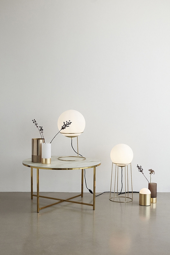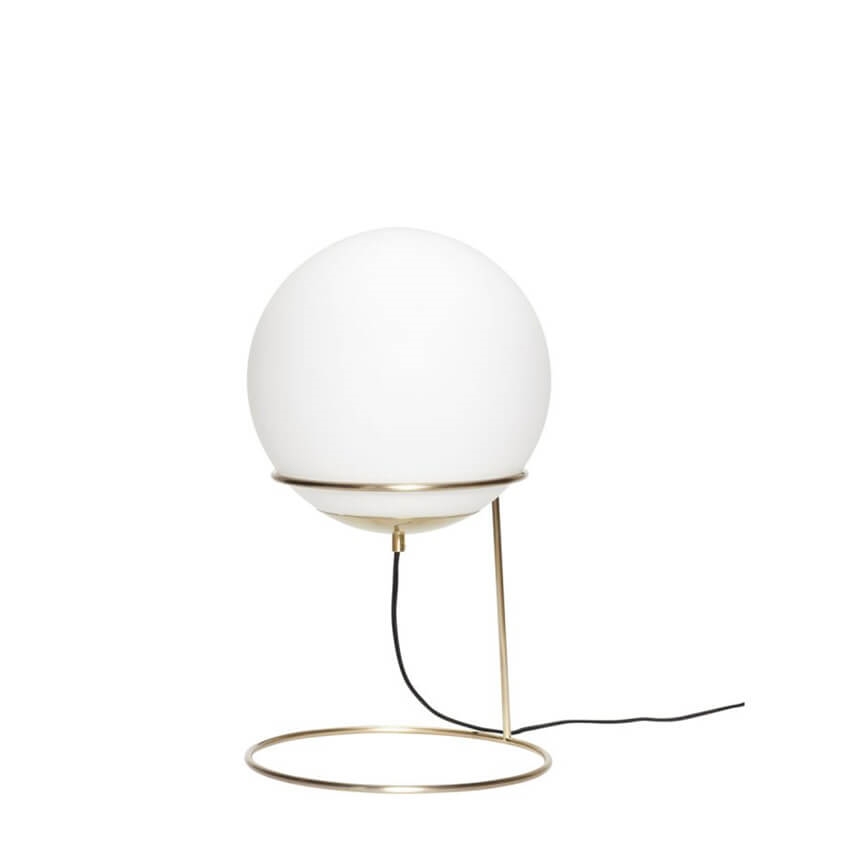 Die Balance Tischlampe hat schöne Messingdetails, die wunderbar mit der großen opalen Glaskugel harmonieren. Die Lampe hat eine ganz eigene Formgebung, die sich hervorragend mit den Messingfarben kombiniert.